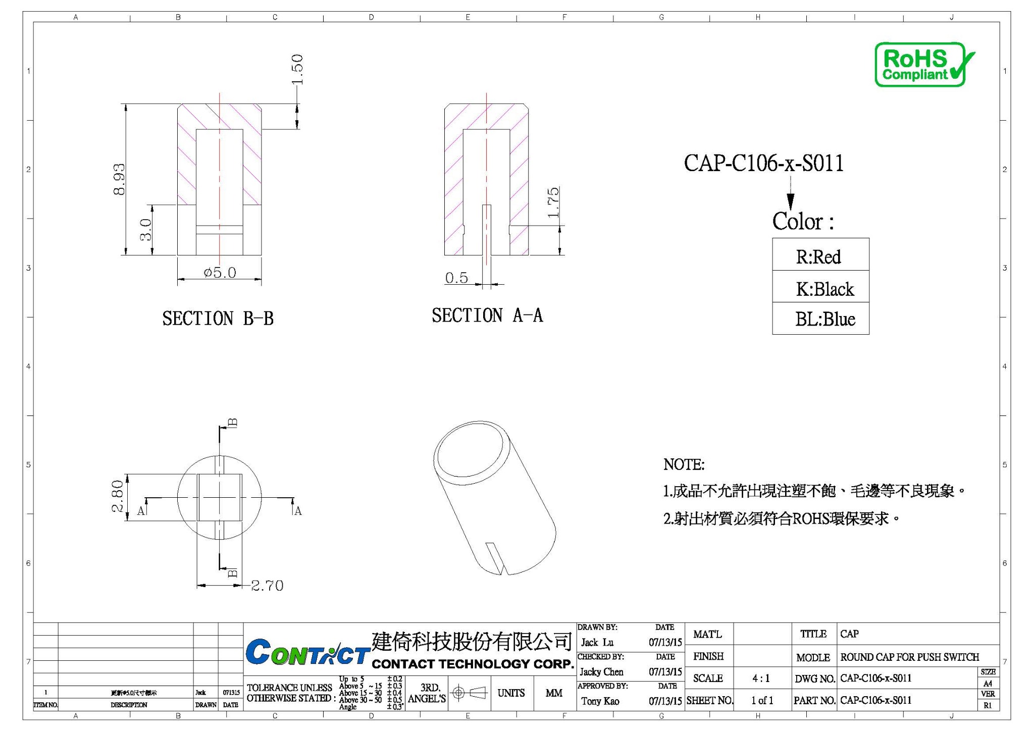 Rating:0.3A ,50VDC